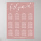 Welcome your guests with this elegant dusty rose pink wedding seating chart. Featuring a minimalist design with modern script that says find your seat, this seating chart is perfect for a sophisticated and stylish wedding. The soft colour and clean layout provide a refined and organised look, ensuring your guests can easily find their seats. Customise with your names and table arrangements to create a unique and cohesive addition to your wedding decor. This seating chart accommodates up to 12 tables, making it ideal for a well-planned and elegant celebration.