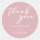 This dusty rose pink wedding thank you sticker features delicate white typography for a romantic afternoon ceremony for a feminine bride who likes soft colours and minimal script design. Soft pastel pink labels for guest and bridal party gifts or favours.