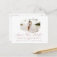 Dusty Rose Pink & White Romantic Brushed Frame with Photo Chic Save the Date Postcard. With luxury marble texture back, elegant calligraphy Script font plus slim line serif! Edit yours today with your names, date and photo!