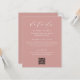 All-in-one enclosure card for your baby shower features three custom fields for additional details; shown with a diaper raffle, book request, and registry QR code, in white lettering on a dusty rose pink background with elegant calligraphy accents.
