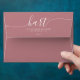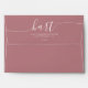 This elegant dusty rose return address envelope design features a sweeping calligraphy-style surname paired with a refined serif font for a beautifully balanced, modern look. Printed in crisp white on a soft blush-toned envelope, it’s perfect for wedding invitations, bridal showers, holiday cards, or any occasion that calls for a stylish and feminine finishing touch. Positioned on the envelope flap, this design adds elegance and personality to your mail. Fully customisable with your name and address.