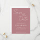 Simple style wedding save-the-date invitations that feature white, stylised script on a trendy, dusty rose colour background. Edit and replace names, date, and location with your own. Select your invitation size and paper style.