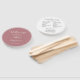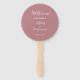 Wedding day program printed on a round style hand fan that features a trendy, dusty rose colour background on the front side with the bride and groom names in white, stylised script. Back side of program lists the wedding party participants and ceremony rites on a white background with dark grey lettering. Edit hand fan and replace wedding program info with your own. Perfect for an indoor or outdoor wedding ceremony! Select number of hand fan programs desired.