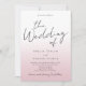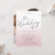 This modern, minimalistic wedding invitation features an elegant script front. It plays with the simplicity of a black and white typography design, adding just a hint of pink dusty rose colour. In the back of the invitation you can add your wedding website information as well as a QR code for your guests to scan. It's the perfect choice for couples who appreciate clean and modern elegance.