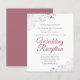 These affordable, budget friendly wedding reception invitations are the perfect choice for class, style, and beauty on a budget. Designed for guests who are invited to the reception but not the ceremony, they feature a classic white background with ornate silver faux foil frills in the corners. The typography includes fancy dusty rose or mauve pink coloured script lettering for a style that is at once simple and elegant. Wonderful way to invite your friends and family to share in your joy on your special day without breaking the bank.