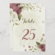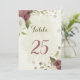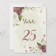 Beautiful romantic table number card featuring dusty rose and white flowers and some pretty leaves .