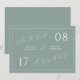 These sage the dates were perfect and came exactly the way they looked on the screen. I was a bit apprehensive on the colour as all the sage green I order always seems to be a little different but this colour was the perfect match. The quality of the card it was printed on was also great, didn’t feel cheap. Great quality printing, card felt nice and thick.