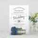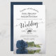This beautiful budget or affordable wedding invitation features a romantic design with a single long-stemmed steel or dusty blue coloured rose laying on its side and reflecting in a pool of water. The typography features lacy script calligraphy and a sophisticated layout. The back is a marbled blue grey colour. Wonderful way to invite your friends and family to share in your joy on your special day.