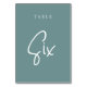 Dusty Teal Hand Scripted Table SIX Table Number