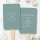 Keep your guests cool and informed with this elegant dusty teal wedding program hand fan. Featuring a minimalist design with modern typography, this hand fan provides a sophisticated and practical touch to your wedding ceremony. The soft colour and clean layout showcase your wedding program details in a stylish and easy-to-read format. Perfect for any wedding theme, these hand fans ensure your guests stay comfortable while following along with your special day's events.
