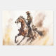 Dusty Western Watercolour Cowboy Riding Mustang Wrapping Paper Sheet