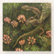 Dutch Art Nouveau Lizard and Wildflowers Glass Coaster