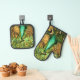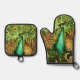 Dutch Art Nouveau Peacock and Chickens Oven Mitt & Pot Holder Set