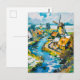 Acrylic fantasy painting of a vibrant Dutch countryside with traditional windmills, colorful houses, and flowing water channels under a glowing sky. The rich colors and dynamic brushwork create a lively, storybook atmosphere that blends rural charm with cultural beauty. Ideal for home decor, travel‑themed products, calendars, greeting cards, and editorial visuals inspired by European landscapes.