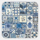 Square sticker with an image resembling ceramic, tin-glazed Delft Dutch tiles.