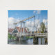 Street and traditional Dutch lifting wooden bridge in fishing village in Volendam, North Holland, Netherlands