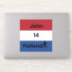 Dutch soccer player using dot as a ball Dutch flag in the background, customisable, change the jerseynumber and name into your favourite player's