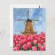 Dutch Windmill Tulip Flower Field Watercolor Postcard