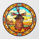 Dutch Windmill With Village Faux Stained Glass Window Cling