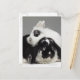 Dwarf-eared rabbit leaning over lop-eared postcard