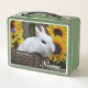 Personalised Dwarf Hotot Bunny Rabbit with Sunflowers Metal Lunch Box