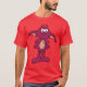 I give wanted to give this a 4 instead of a 5 because these Basic DARK T0shirts run unexpectedly SLIM or Narrow. Which is great if you do not have a potbelly, but I have a paunch. It isn't the shirt's fault that I've got a beer belly. The design and shirt itself is a quality cotton shirt. The color is more of a deep purple, but still a very pretty color. The Basic DARK T-shirts run a bit SLIMMER than the Basic Ts. The neck is a fraction narrower (or seems to be narrower) also. I'm a paunchy middle-aged woman and my neck is 12 inches (31cm) thick and the neckline fell about the same as in the photo of the man, and I had the desire to tug it a bit. So if you're a thick necked man or like loose shirts, be aware these are slimmer shirts. Once I get rid of my lockdown paunch it'll look great. The shirt washed well in cold water with no apparent bleeding. We don't have a dryer, so it hung dry. Did not shrink. Love the colors and the design. The design looks smaller on my shirt than it does on the model on-line. But still, it looks good on the shirt. The printing looks as it does on the model, just the size seems fractionally smaller. Washed garment in cold water, hung dry and design appeared unaffected.