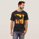 I give wanted to give this a 4 instead of a 5 because these Basic DARK T0shirts run unexpectedly SLIM or Narrow. Which is great if you do not have a potbelly, but I have a paunch. It isn't the shirt's fault that I've got a beer belly. The design and shirt itself is a quality cotton shirt. The color is more of a deep purple, but still a very pretty color. The Basic DARK T-shirts run a bit SLIMMER than the Basic Ts. The neck is a fraction narrower (or seems to be narrower) also. I'm a paunchy middle-aged woman and my neck is 12 inches (31cm) thick and the neckline fell about the same as in the photo of the man, and I had the desire to tug it a bit. So if you're a thick necked man or like loose shirts, be aware these are slimmer shirts. Once I get rid of my lockdown paunch it'll look great. The shirt washed well in cold water with no apparent bleeding. We don't have a dryer, so it hung dry. Did not shrink. Love the colors and the design. The design looks smaller on my shirt than it does on the model on-line. But still, it looks good on the shirt. The printing looks as it does on the model, just the size seems fractionally smaller. Washed garment in cold water, hung dry and design appeared unaffected.