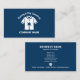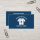 A blue business card for a dyeing and dry cleaning shop or service with an illustration of a shirt with a stain. Perfect for all activities of ironing, laundry, dry cleaning, launderette, laundry care, clothing washing, etc.