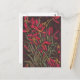 Postcard featuring bold floral painting, dying red tulips with olive green leaves. Soft pastels and charcoal on paper, 2020