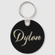 Ein sehr schöner edler personalisierter Button Schlüsselanhänger im whitegold Lettering Look auf schwarz für Dylan.