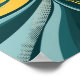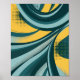 This image features a dynamic and flowing abstract design with bold curves and geometric patterns. The colour palette consists of teal, dark green, and yellow, evoking a sense of retro pop art. The halftone dots and smooth lines give the composition a sense of movement and depth, blending modern aesthetics with classic design elements. The interplay of colours and shapes creates a vibrant yet harmonious visual effect.