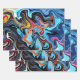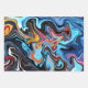 Dynamic Abstract Swirls with Blue, Orange, & Black Wrapping Paper Sheet