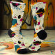 Step into creativity with these dynamic artistic socks, featuring a bold mix of teal, magenta, and yellow geometric shapes and brushstroke accents. The expressive design incorporates abstract patterns, splashes, and sweeping lines on a cream background, offering a unique and modern flair. Perfect for creative minds and style enthusiasts, these socks are a vibrant statement for any wardrobe.
