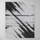 A striking abstract artwork featuring bold black strokes slashing across a pale grey background. The jagged lines and splattered textures create a sense of raw energy and aggression, as if the canvas has been torn apart by speed and force. The contrast between sharp edges and scattered drips gives the piece a gritty, intense, and almost violent rhythm.