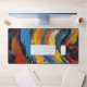 Upgrade your workspace with this striking horizontal desk mat. The artwork showcases a highly energetic abstract expressionism painting with sweeping fluid swirls and rich impasto textures in vibrant primary colours. It provides a smooth working surface while adding a bold, creative, and professional vibe to your desk.