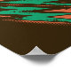 The artwork features a dark brown background with bold, jagged strokes of reddish orange and turquoise green intersecting in a dynamic, lightning-like pattern. Halftone dots and splattered textures enhance the edges, adding raw energy and intensity. The contrast between earthy brown, fiery orange, and vibrant turquoise green creates a striking, urban-inspired abstract composition that feels both aggressive and electrifying.