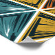 This design features a bold and energetic geometric pattern composed of overlapping triangles filled with radiant, brush-like streaks. The color palette includes orange, golden yellow, teal green, black, and white, creating a strong visual contrast. The triangles are arranged in a repeating grid with sharp, dynamic lines that give the impression of motion and vibrancy. The white background enhances the brightness of the colored shapes, giving the composition a clean yet powerful aesthetic. Overall, the design feels modern, expressive, and full of energy—perfect for contemporary decor, digital backgrounds, or graphic projects.