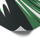 An abstract design featuring flowing, sharp-edged streaks in dark green, medium green, and black on an off-white background. The streaks run diagonally from the lower left to the upper right, creating a sense of speed, motion, and energy, reminiscent of wind or rapid movement effects.