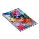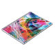 A vibrant explosion of colors and dynamic lines creates an abstract composition full of energy and movement. The interplay of bright hues and sharp angles draws the eye in various directions, creating a sense of depth and complexity.