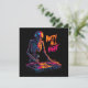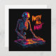 A vibrant and dynamic illustration featuring a glowing skeleton wearing large headphones and intently mixing music on a set of turntables. The artwork uses high-contrast, electric neon colours (pink, cyan, yellow) to light up the bones and the equipment, set against a stark black background. The phrase "PARTY ALL NIGHT" glows in matching neon lettering.