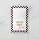Express your heartfelt gratitude with this thrilling 'Thank You For Racing By' greeting card, perfect for any high-speed celebration! Featuring an iconic chequered flag border, a sleek Formula 1 race car, and an adorable race car driver, this card captures the excitement of the track. It's an ideal way to thank guests for attending birthdays, themed parties, or any motorsport event. With ample space inside for your personalised message, this card ensures your appreciation crosses the finish line in style, leaving a lasting impression on your attendees.