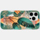 The picture combines an abstract composition of lush palm leaves in strong turquoise, green and orange, with a structured and picturesque background. It radiates a lively energy and a modern tropical atmosphere, which awakens curiosity and warmth.