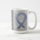 Dyslexia uses a silver awareness ribbon to show support for its awareness. This custom mug features silver awareness ribbon guardian angel art paintings with the message "I Hope and Support Dyslexia Awareness!" The custom silver awareness guardian angel ribbon art picture coffee cups or mugs can be customised with personalised messages to make great cause mugs for awareness fundraisers, awareness cup gifts, or other special events or cause support occasions. Make your own customised words for a personal message of hope and support to share!