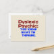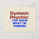 This reads, "Dyslexic Psychic: You know what I'm thinking." Thing get kind of turned around when you're dyslexic.