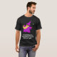 I give wanted to give this a 4 instead of a 5 because these Basic DARK T0shirts run unexpectedly SLIM or Narrow. Which is great if you do not have a potbelly, but I have a paunch. It isn't the shirt's fault that I've got a beer belly. The design and shirt itself is a quality cotton shirt. The color is more of a deep purple, but still a very pretty color. The Basic DARK T-shirts run a bit SLIMMER than the Basic Ts. The neck is a fraction narrower (or seems to be narrower) also. I'm a paunchy middle-aged woman and my neck is 12 inches (31cm) thick and the neckline fell about the same as in the photo of the man, and I had the desire to tug it a bit. So if you're a thick necked man or like loose shirts, be aware these are slimmer shirts. Once I get rid of my lockdown paunch it'll look great. The shirt washed well in cold water with no apparent bleeding. We don't have a dryer, so it hung dry. Did not shrink. Love the colors and the design. The design looks smaller on my shirt than it does on the model on-line. But still, it looks good on the shirt. The printing looks as it does on the model, just the size seems fractionally smaller. Washed garment in cold water, hung dry and design appeared unaffected.