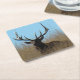E26 Bull Elk Laying in the Weed Square Paper Coaster