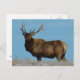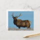 Bull Elk Sky Lined Postcard. A big beautiful bull elk surveys his surroundings from a hill top on the Southern Alberta prairies under a perfect blue winter sky.