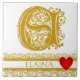 E Monogram Name Gold Lace Red Heart Template Tile