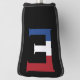 E Monogram overlaid on Netherlands Flag on black Golf Club Cover