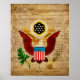 Vintage overlay look of the United States Seal atop the Constitution of the United States.
